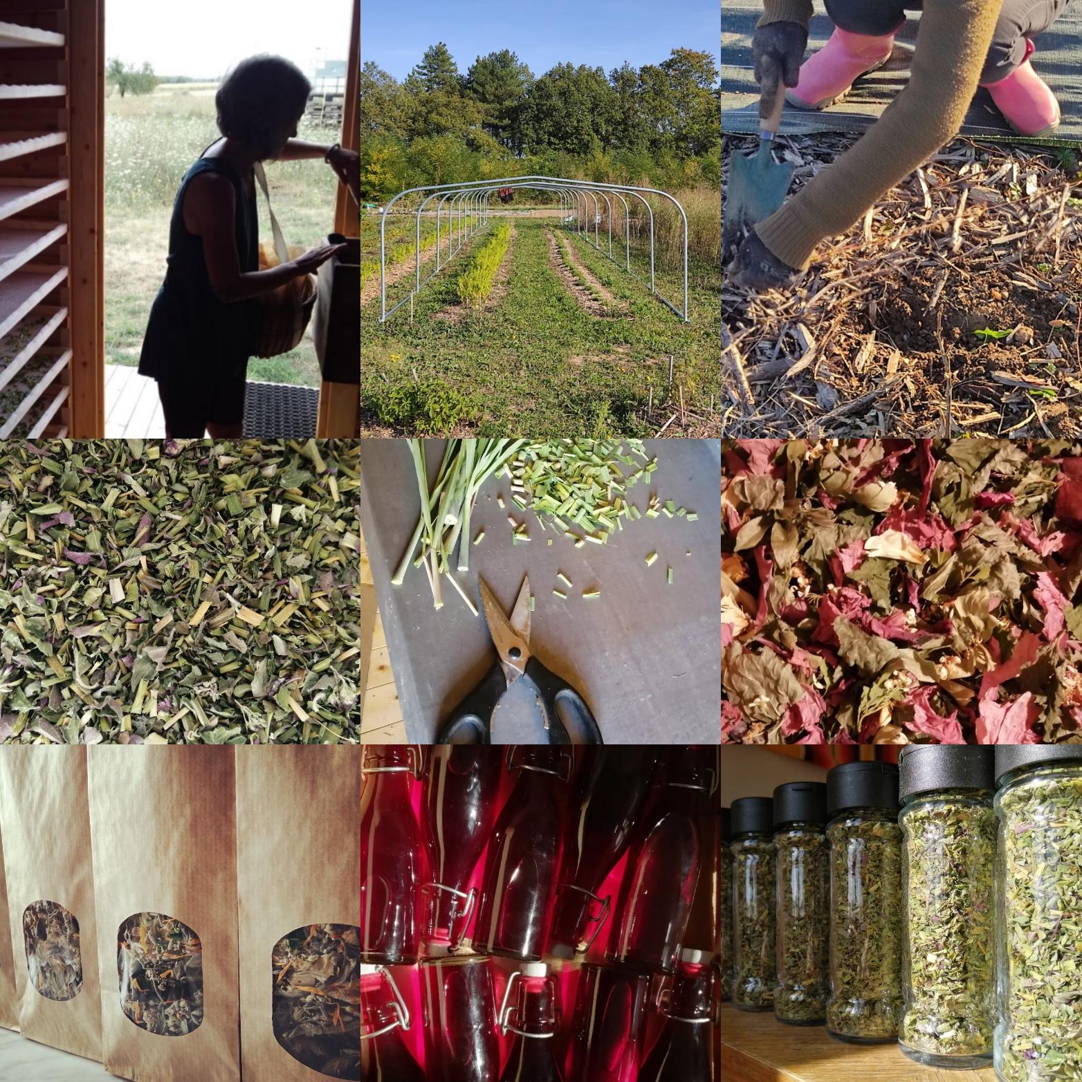 Productrice et transformatrice de plantes aromatiques et médicinales installée depuis 2021 sur la commune de Lavoux (86), je cultive et récolte manuellement une cinquantaine de plantes, que je complète avec la cueillette d'une dizaine d'autres en zones naturelles préservées à 15km aux alentours.